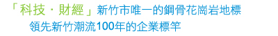 「科技‧財經」全部採用花崗岩高貴石材,正面造型 取風城古典城門穩重精神,深具史學與美學的質感。主入口的立面則以花崗岩、玻璃、鋁線的垂直、水平的簡潔線條,整座建築量體在對稱、律動與分割的元素裡,呈現了「速度感」和「輕量化」,以及無比尊貴的質感。 鋼骨永恆結構「科技‧財經」全棟採用純鋼骨結構興建,抗震係數安全指數等高,確保建築恆久價值,營造了令人安心的工作職場。